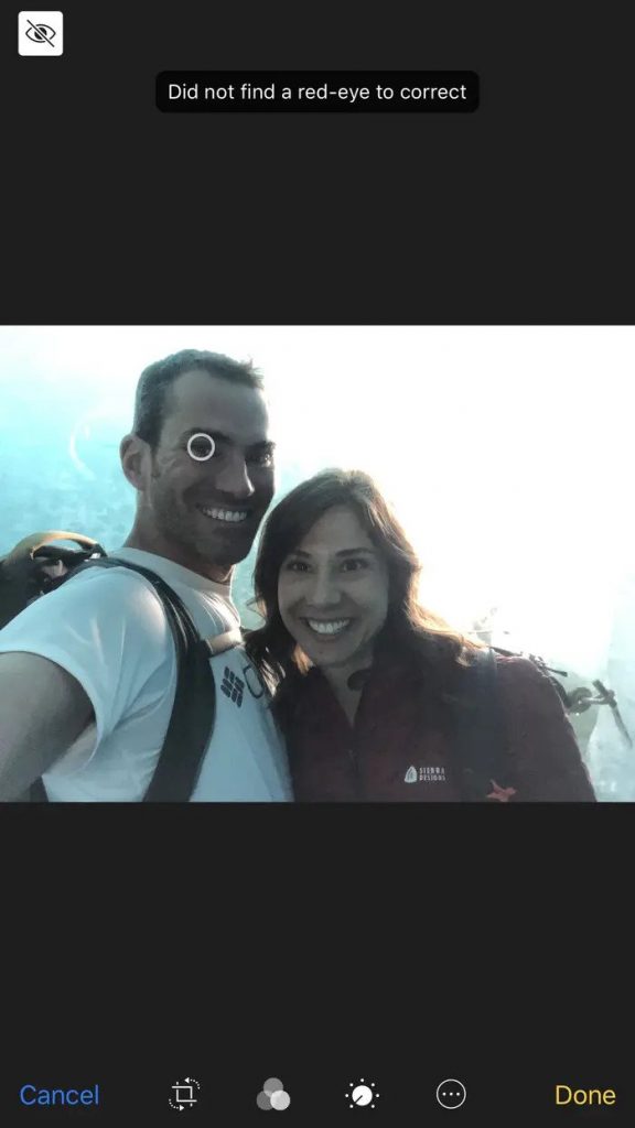 Red eye which occurs due to the use of flash when clicking on images can be corrected with Apple Photos. First click on the Edit option and then on the eye icon which will delete it. Red eyes still happens these days and it is annoying even with latest phone models.